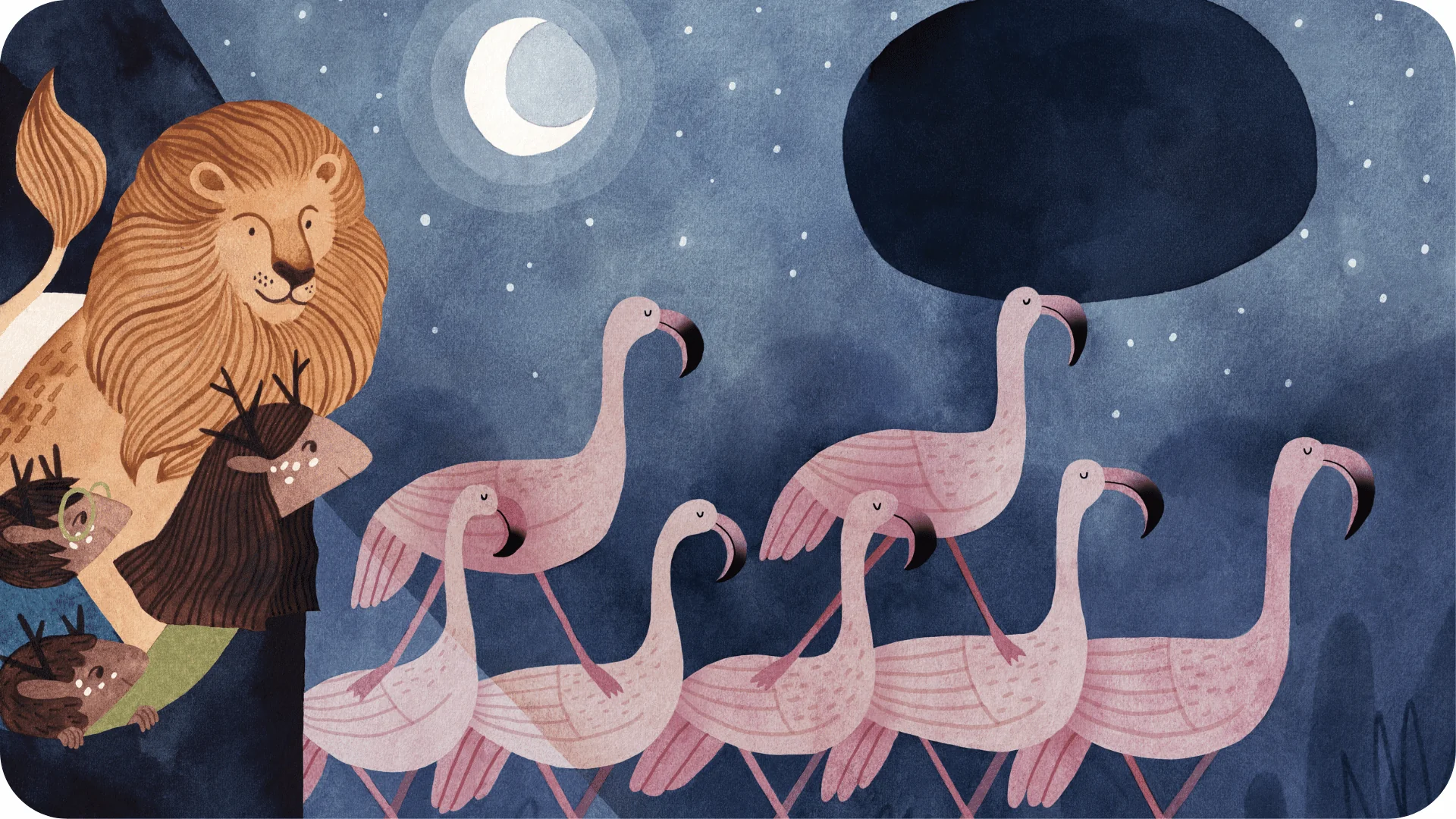 Ce conte musical réunit quatre amis qui fuient la pluie dans une arche de Noé improvisée en direction de la montagne Bleue. En chemin, de nombreux personnages viennent rejoindre la joyeuse “bande à Bébert” : un lion muet, des flamands roses acrobates, une coccinelle géante et un coq qui a mal à la gorge. Un très beau voyage totalement débridé au son de compositions aussi tendres que drôles.